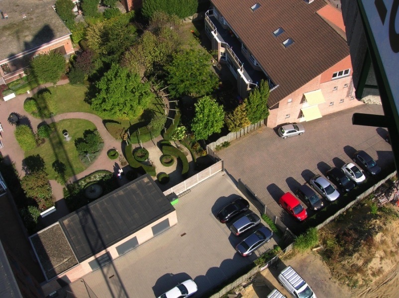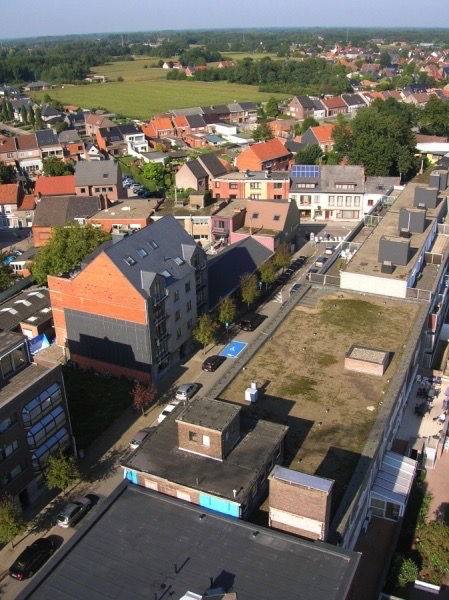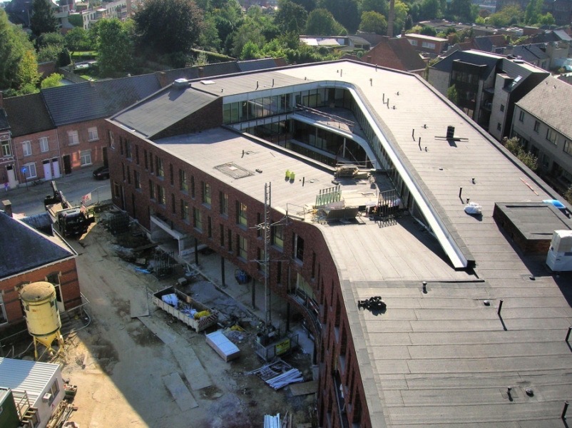 Enkele overzichtsfoto's vanuit de lucht. Een 30 meter hoge torenkraan domineerde tijdens de ruwbouwwerken het straatbeeld van Geel. fotoablum fotos