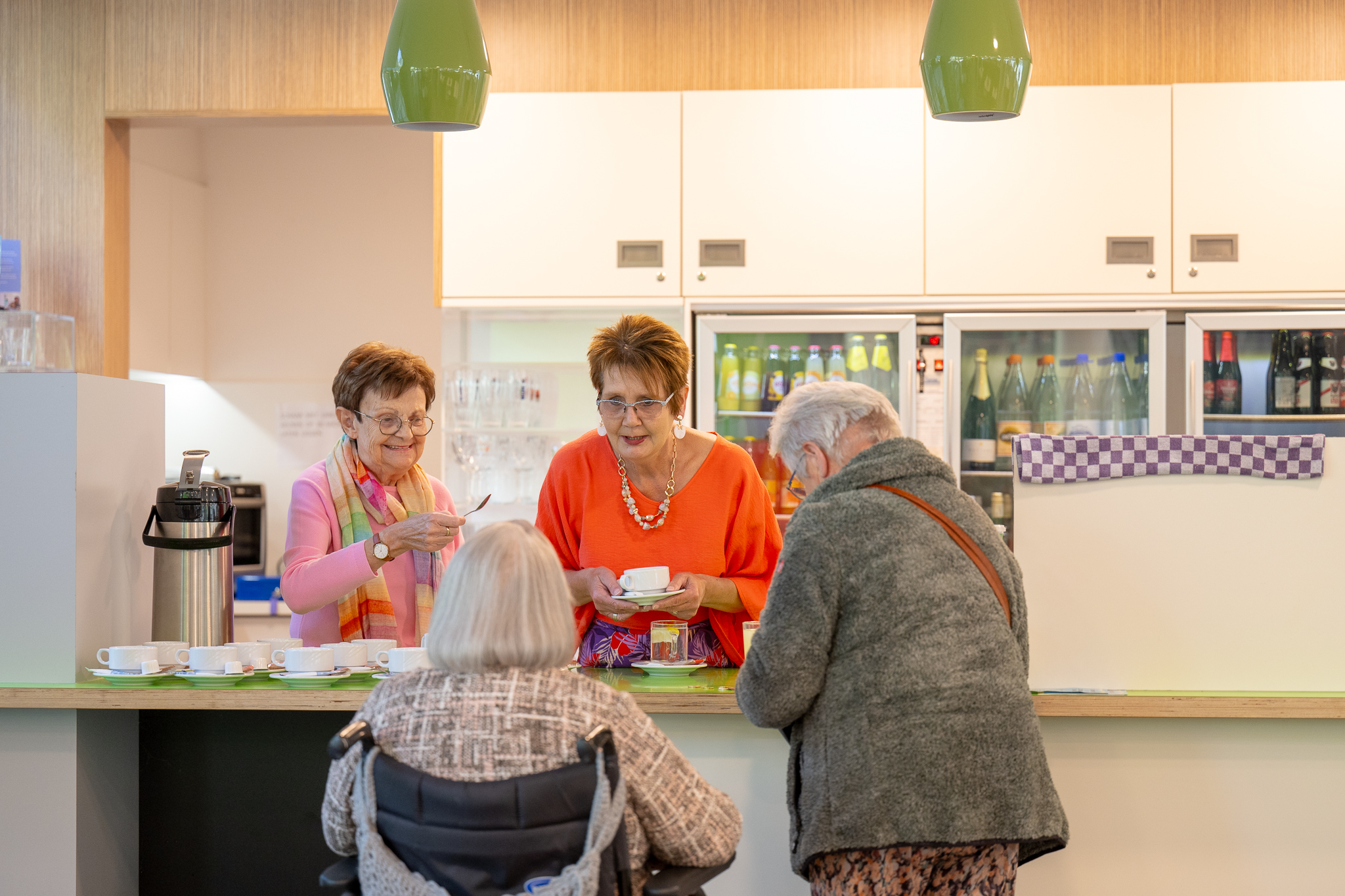 Elke maand staan tientallen warme mensen paraat om mee het leven van onze bewoners mooier te maken. Ze houden ons gezellige café De Ruimte open – in de volksmond nog vaak "de cafetaria" genoemd – maar wie binnenstapt, merkt meteen dat dit veel meer is dan dat. Het is een sfeervolle ontmoetingsplek waar bewoners, familie en bezoekers samen genieten van een drankje en elkaars gezelschap. En ja, we zijn ervan overtuigd dat dit gezellige plekje niet zou misstaan tussen de betere horecazaken van Geel.